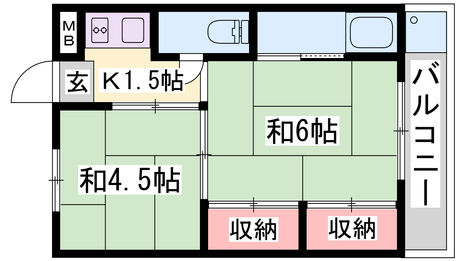 - K1.5帖、和室6帖、和室4.5帖