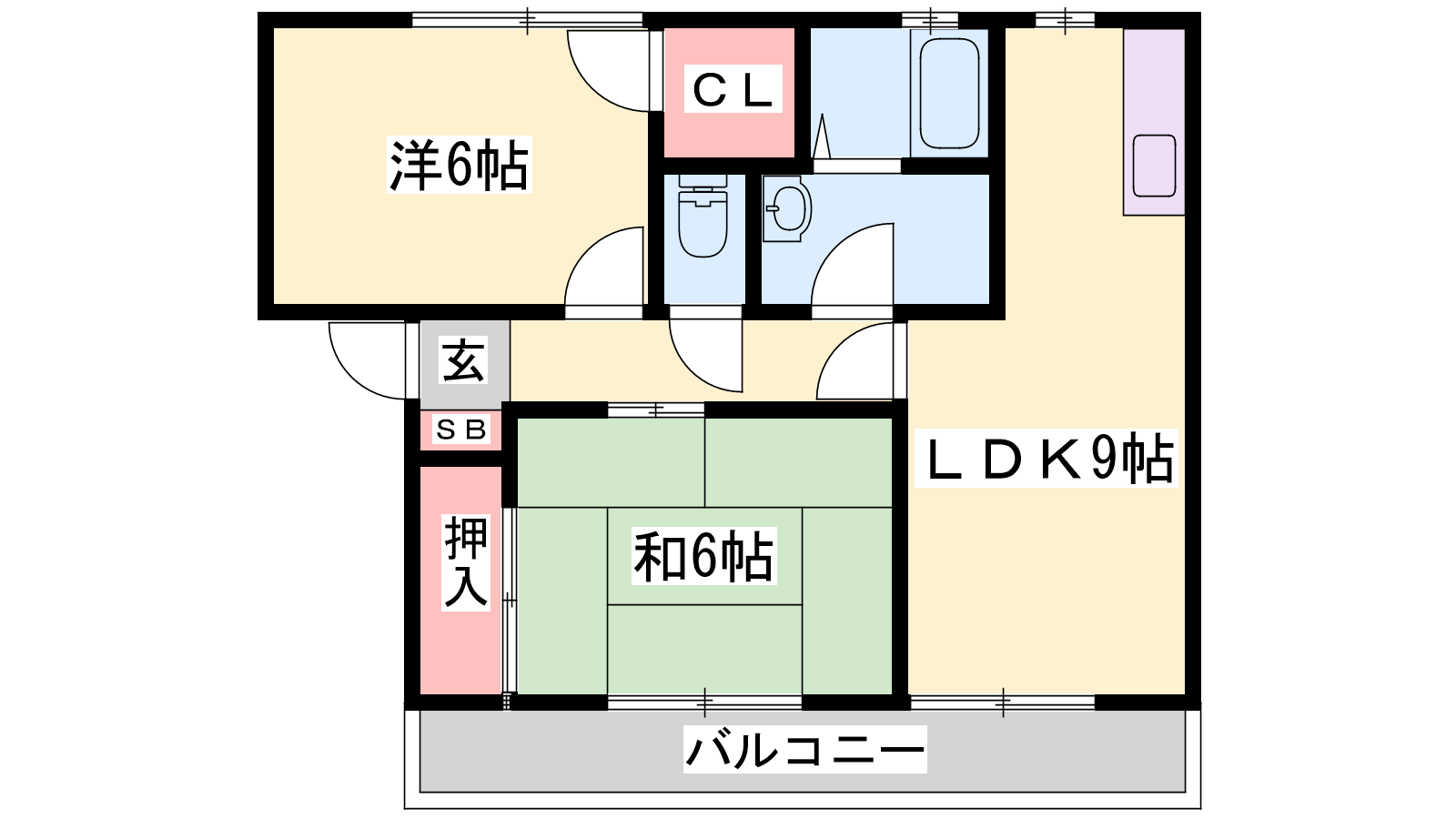 - LDK9帖、洋室6帖、和室6帖