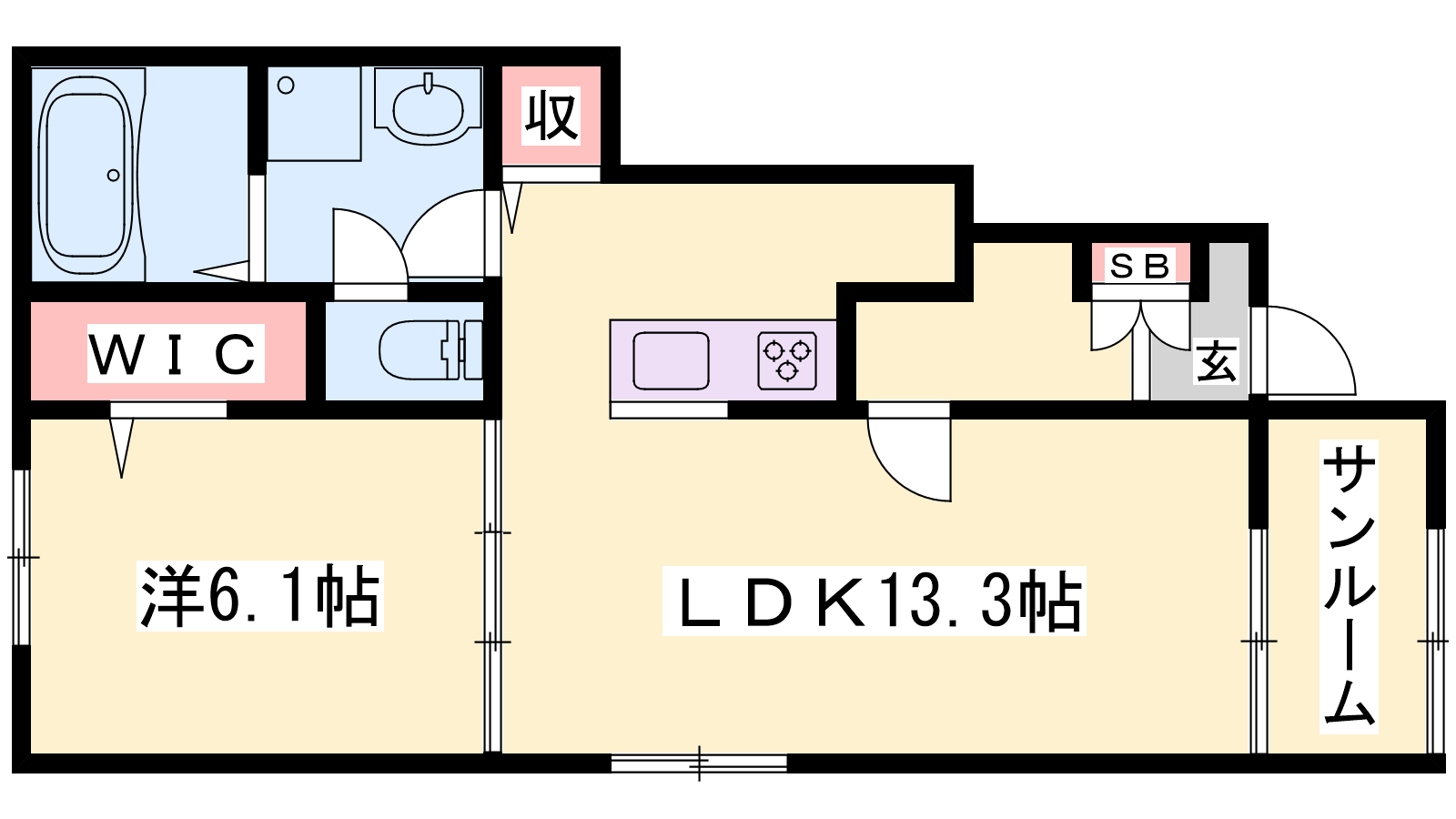 - LDK13.3帖、洋室6.1帖