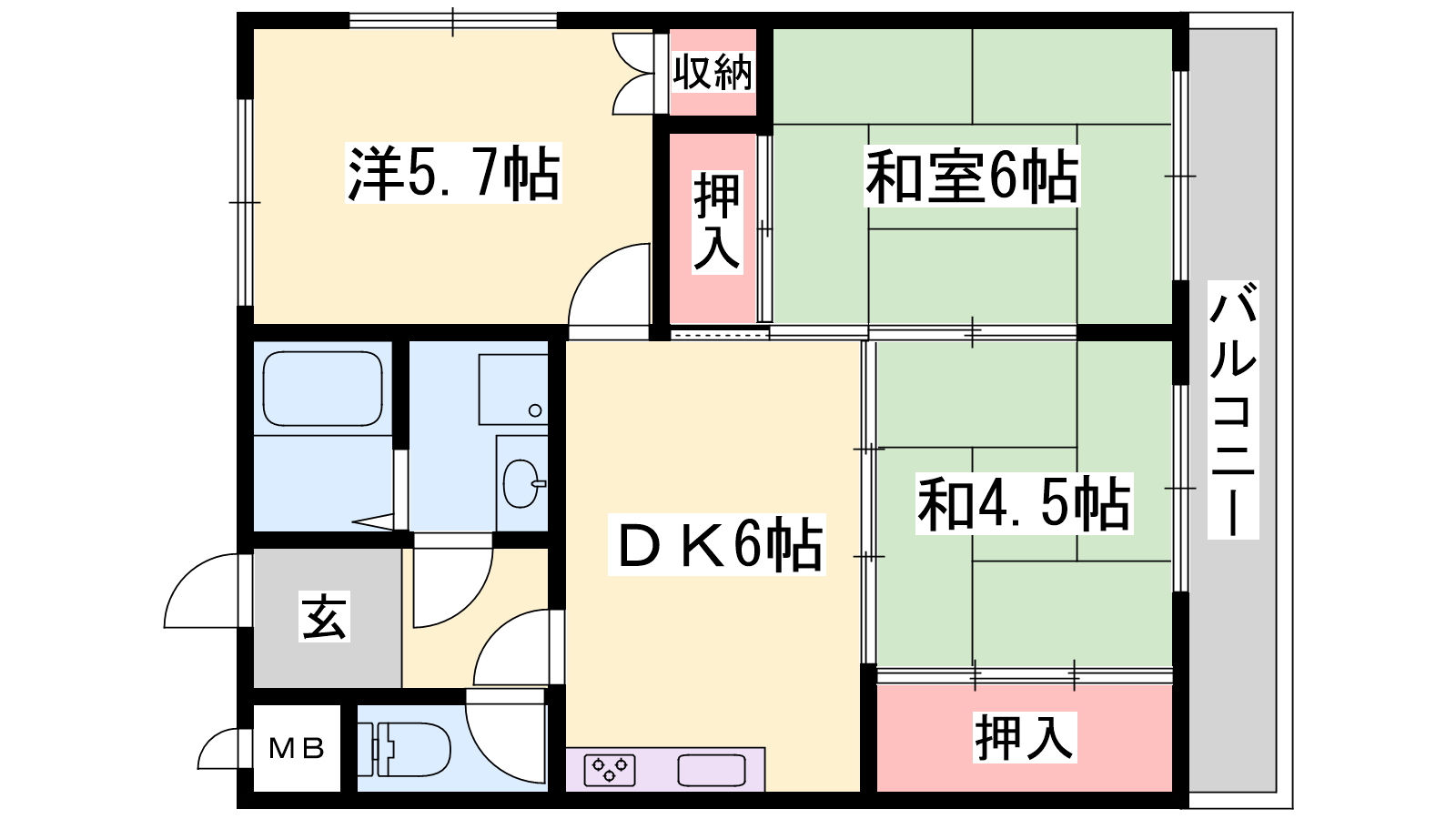 - DK6帖、洋室5.7帖、和室6帖、和室4.5帖