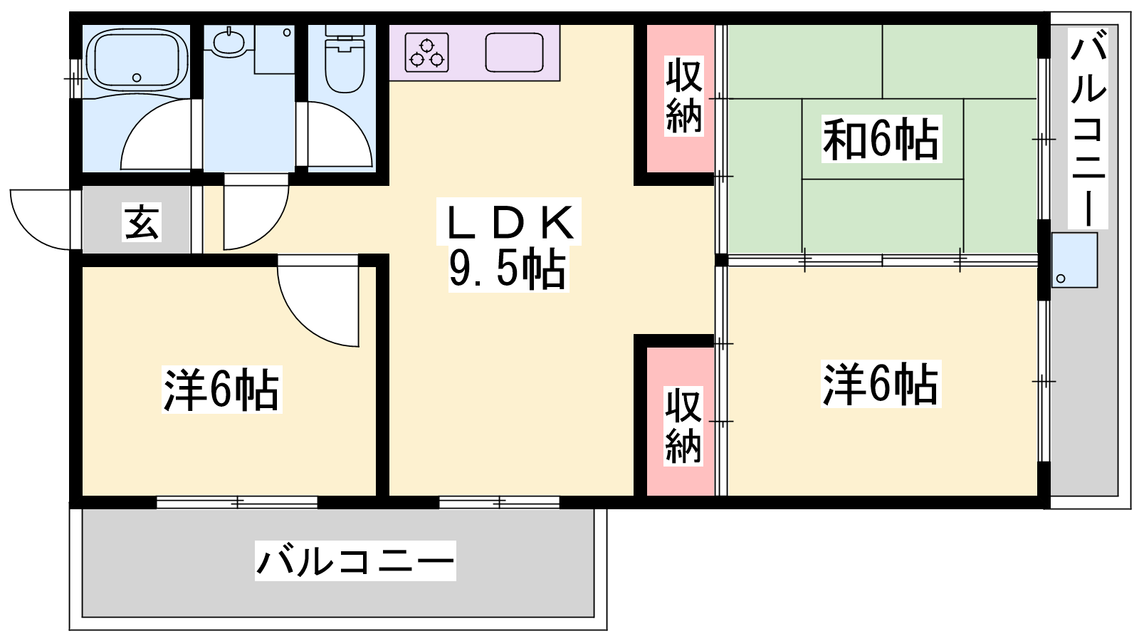 - LDK9.5帖、洋室6帖、洋室5.5帖、和室6帖
