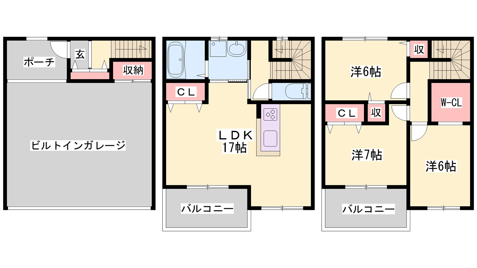 - LDK17帖、洋室7帖、洋室6帖、洋室6帖
