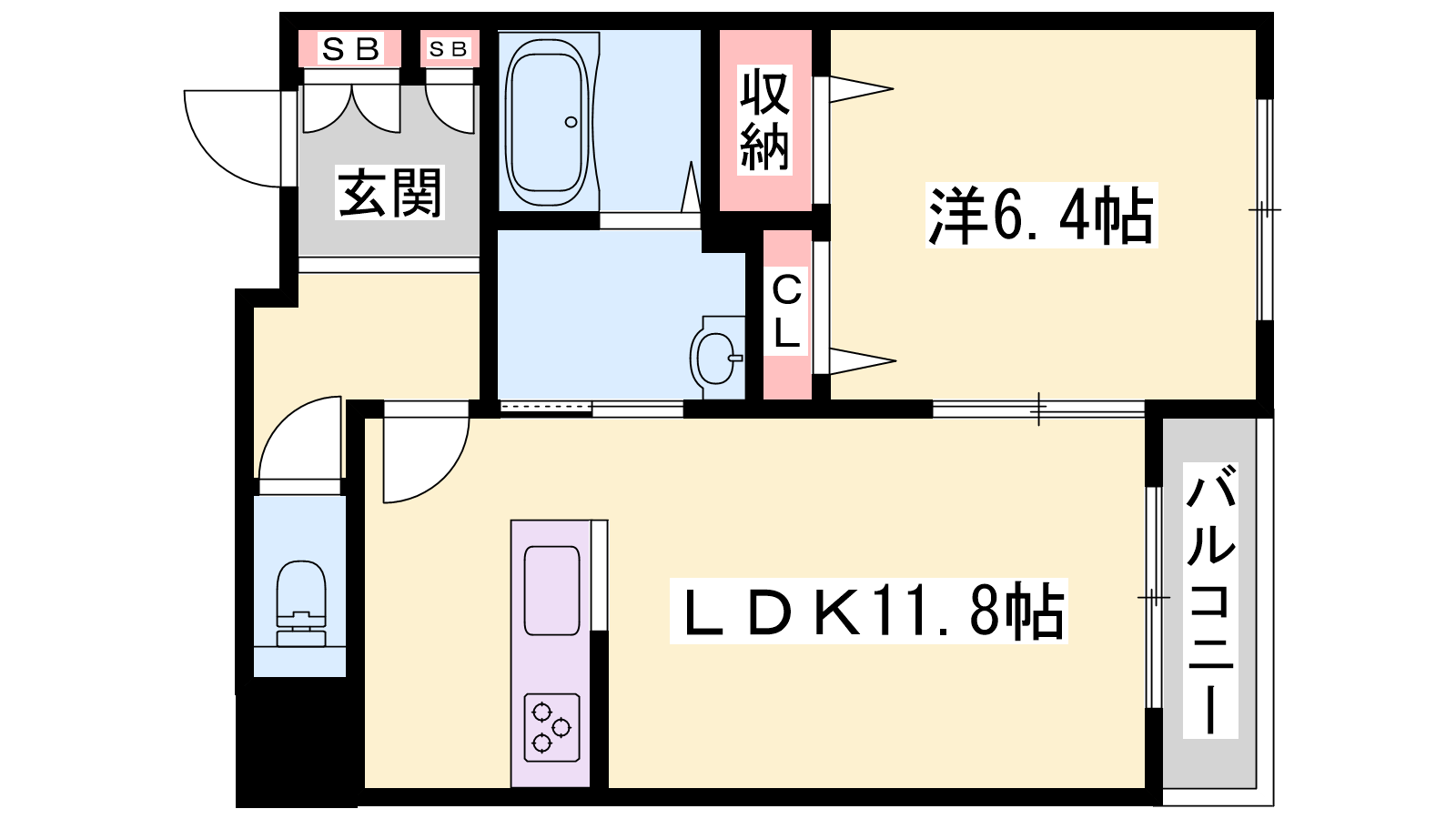 - LDK11.8帖、洋室6.4帖