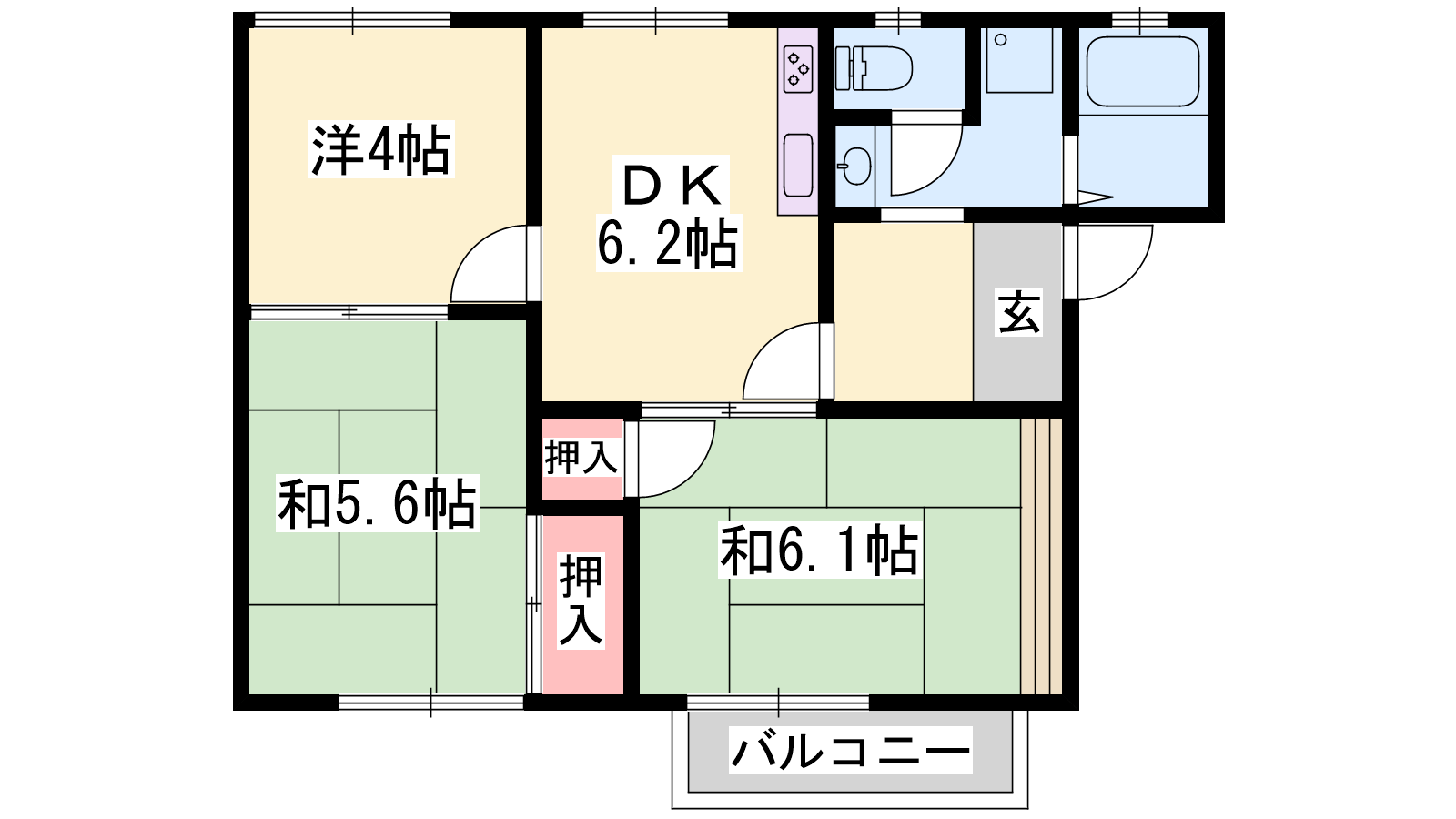 - DK6.2帖、洋室4帖、和室6.1帖、和室5.6帖