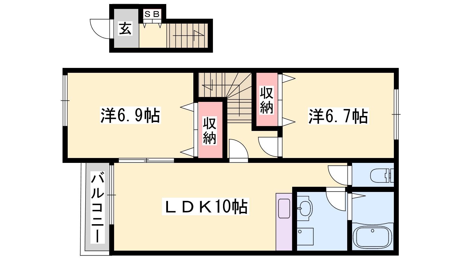 - LDK10帖、洋室6.9帖、洋室6.7帖