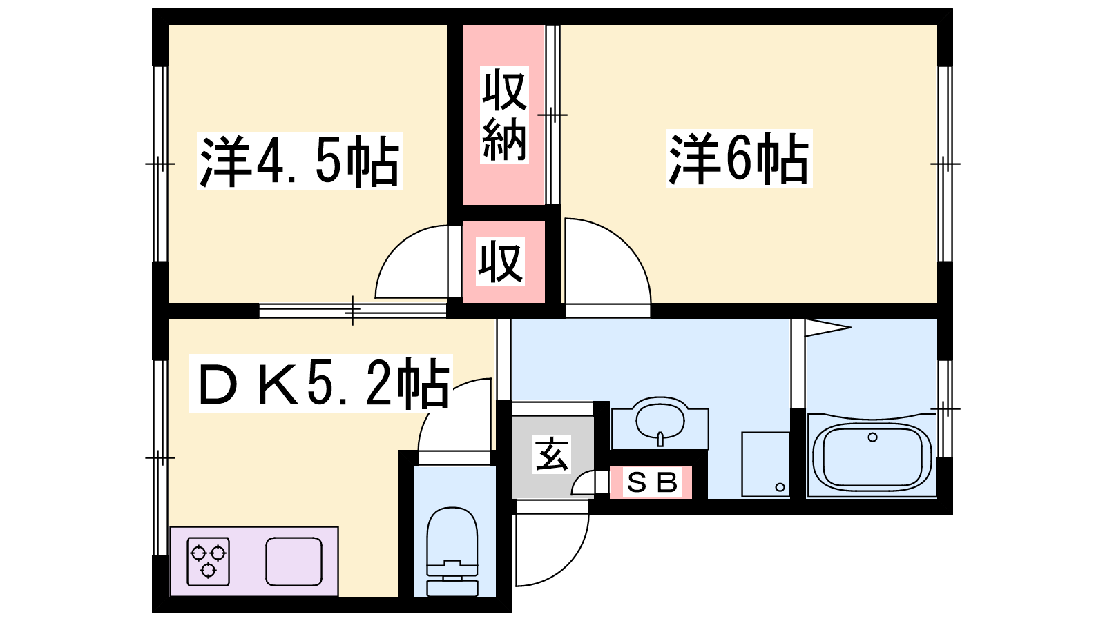 - DK5.2帖、洋室6帖、洋室4.5帖