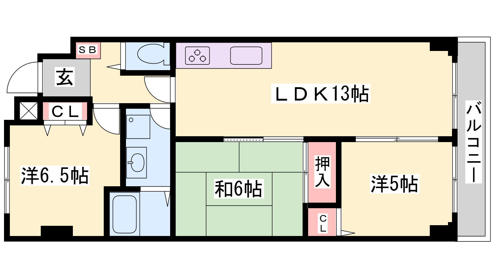 - LDK13帖、和室6帖、洋室6.5帖、洋室5帖