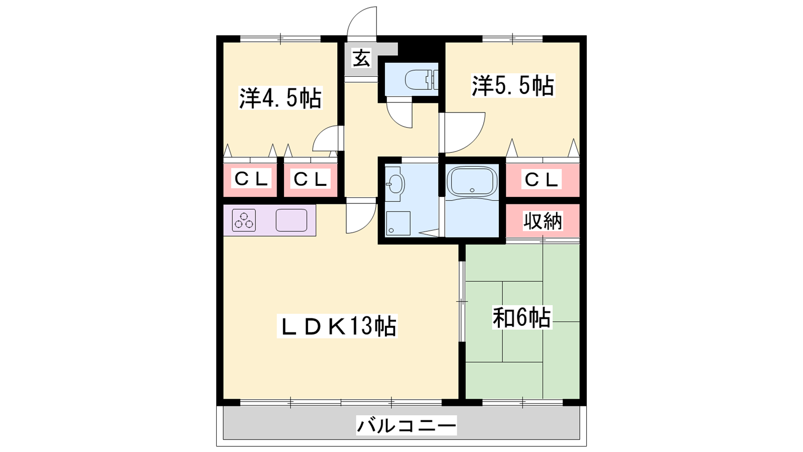 - LDK13帖、洋室5.5帖、洋室4.5帖、和室6帖