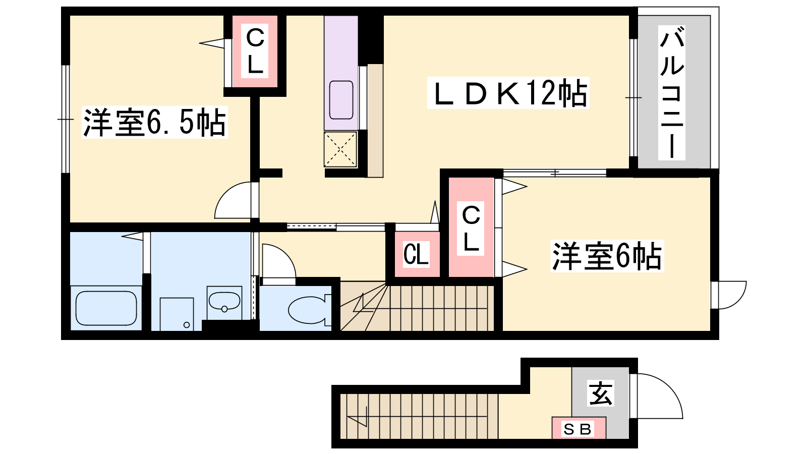 - LDK12帖、洋室6.5帖、洋室6帖