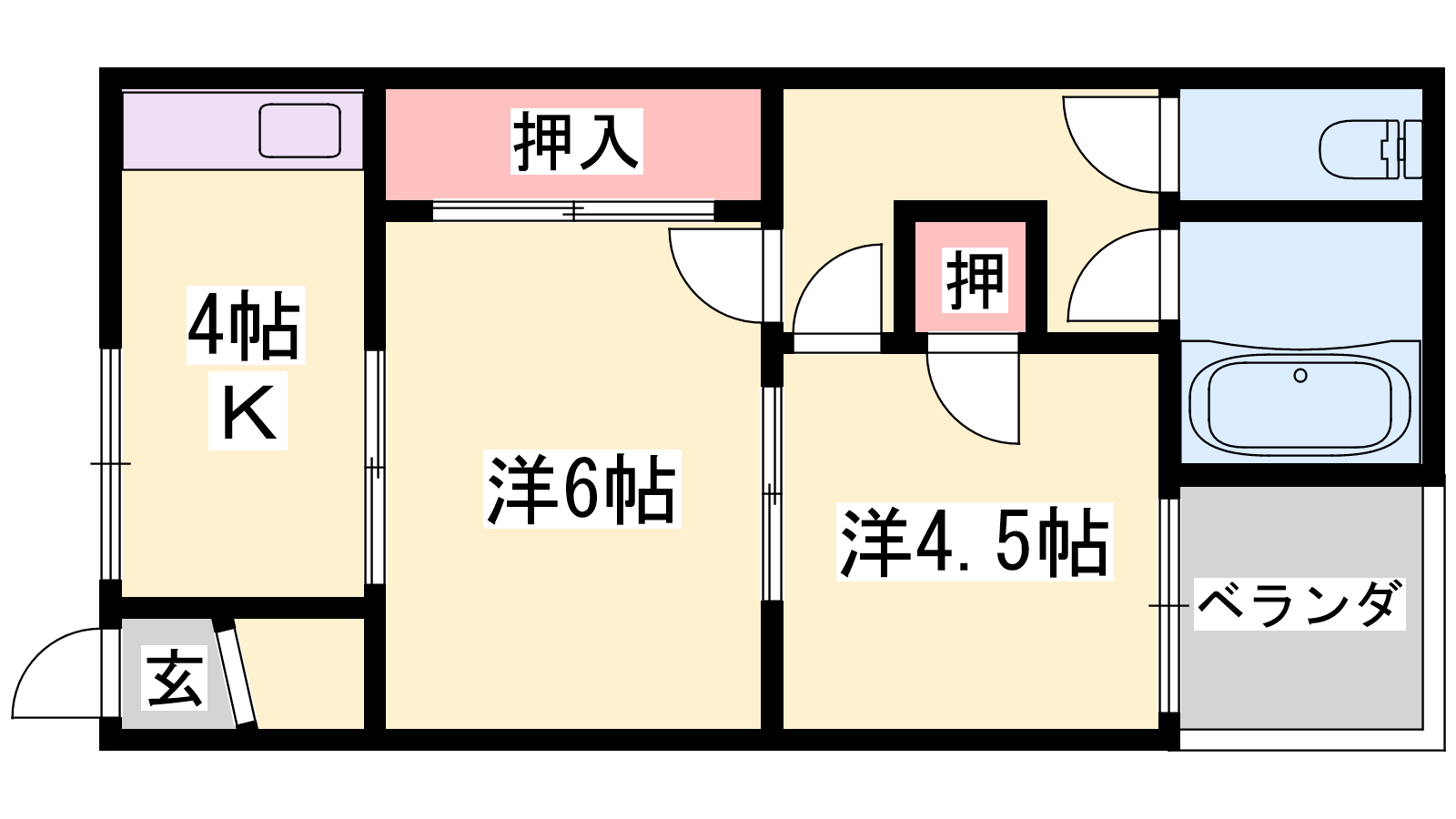 - K4帖、洋室6帖、洋室4.5帖