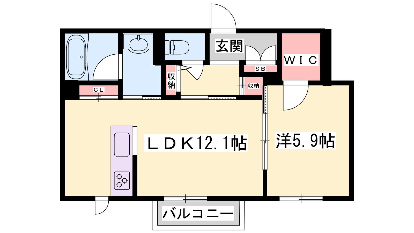 - LDK12.1帖、洋室5.9帖