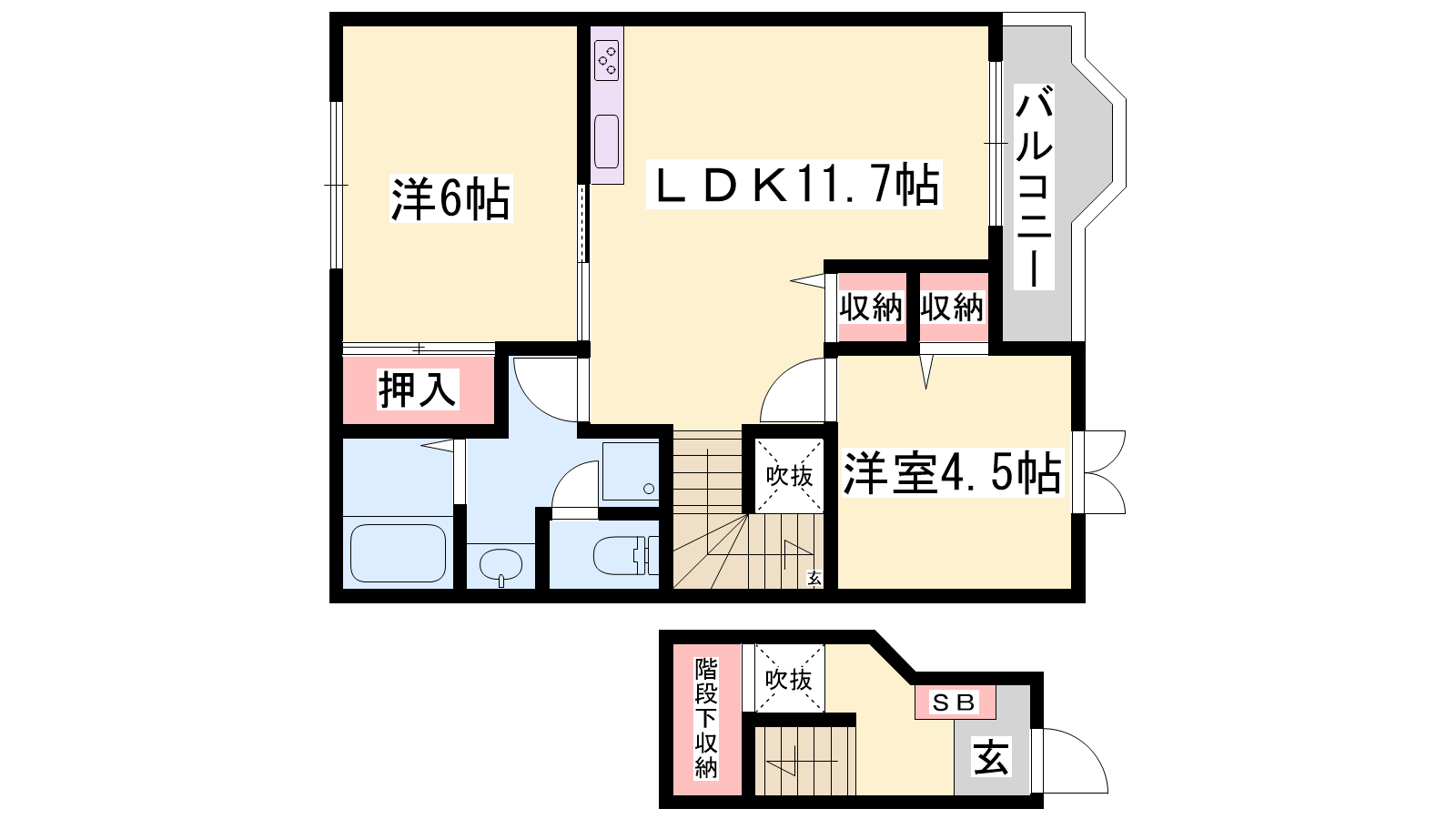 - LDK11.7帖、洋室4.5帖、和室6帖
