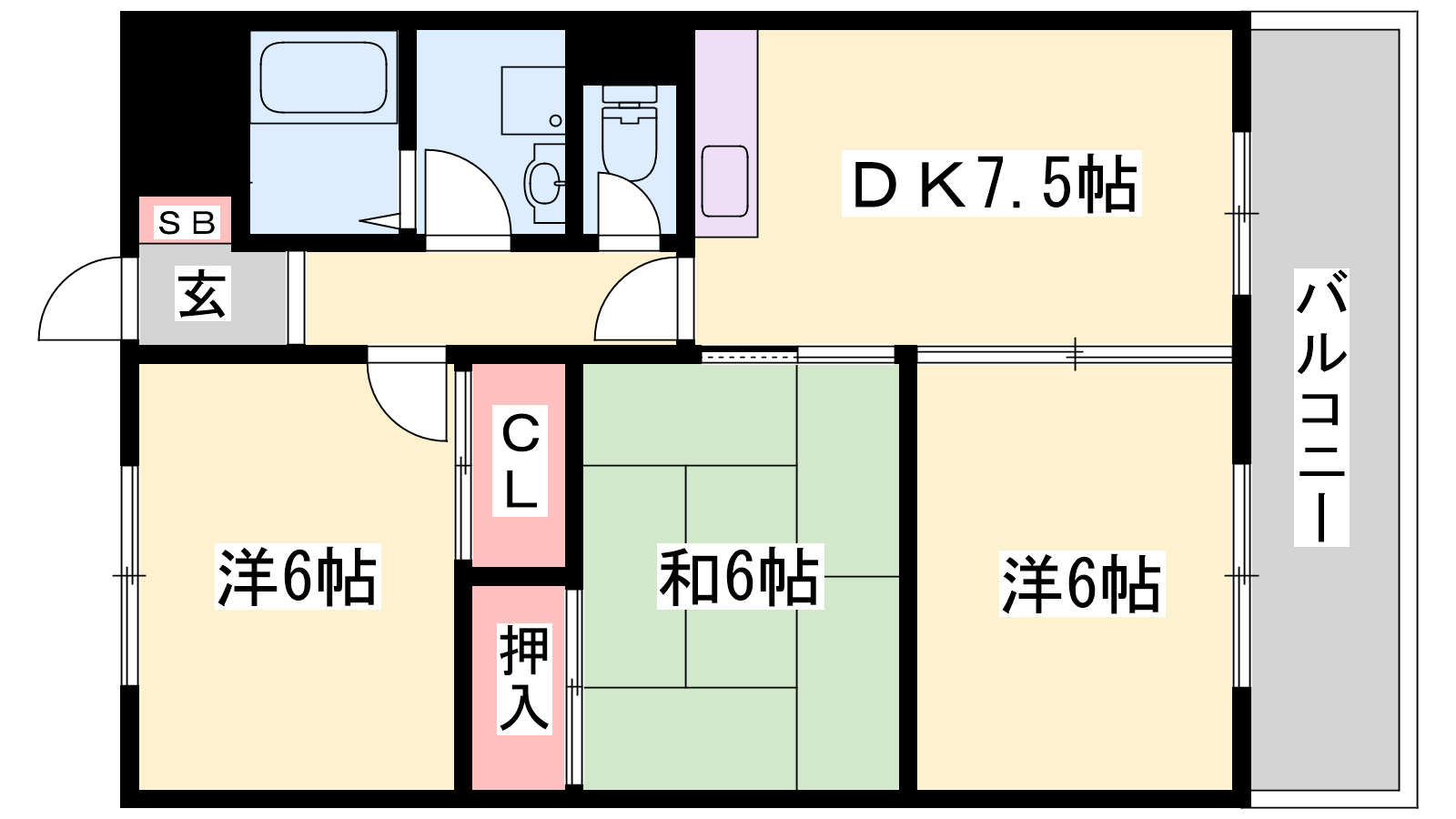 - DK7.5帖、洋室6帖、洋室6帖、和室6帖