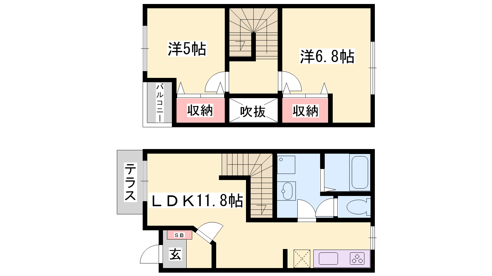 - LDK11.8帖、洋室5帖、洋室6.8帖