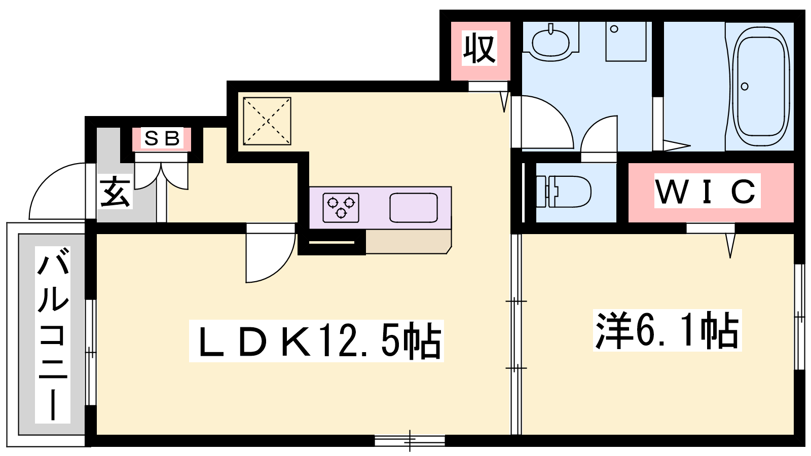 - LDK12.5帖、洋室6.1帖