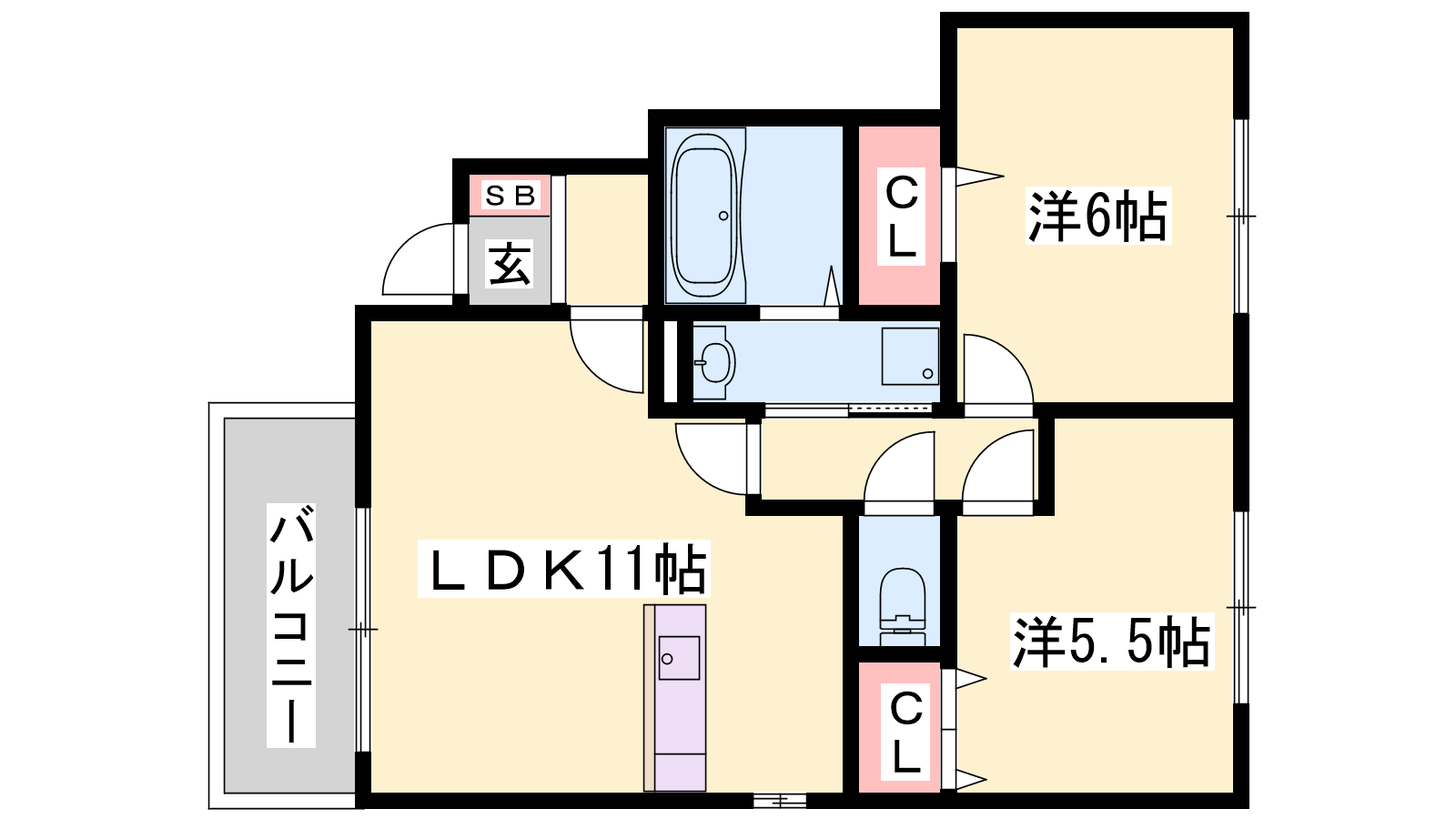 - LDK11帖、洋室6帖、洋室5.5帖