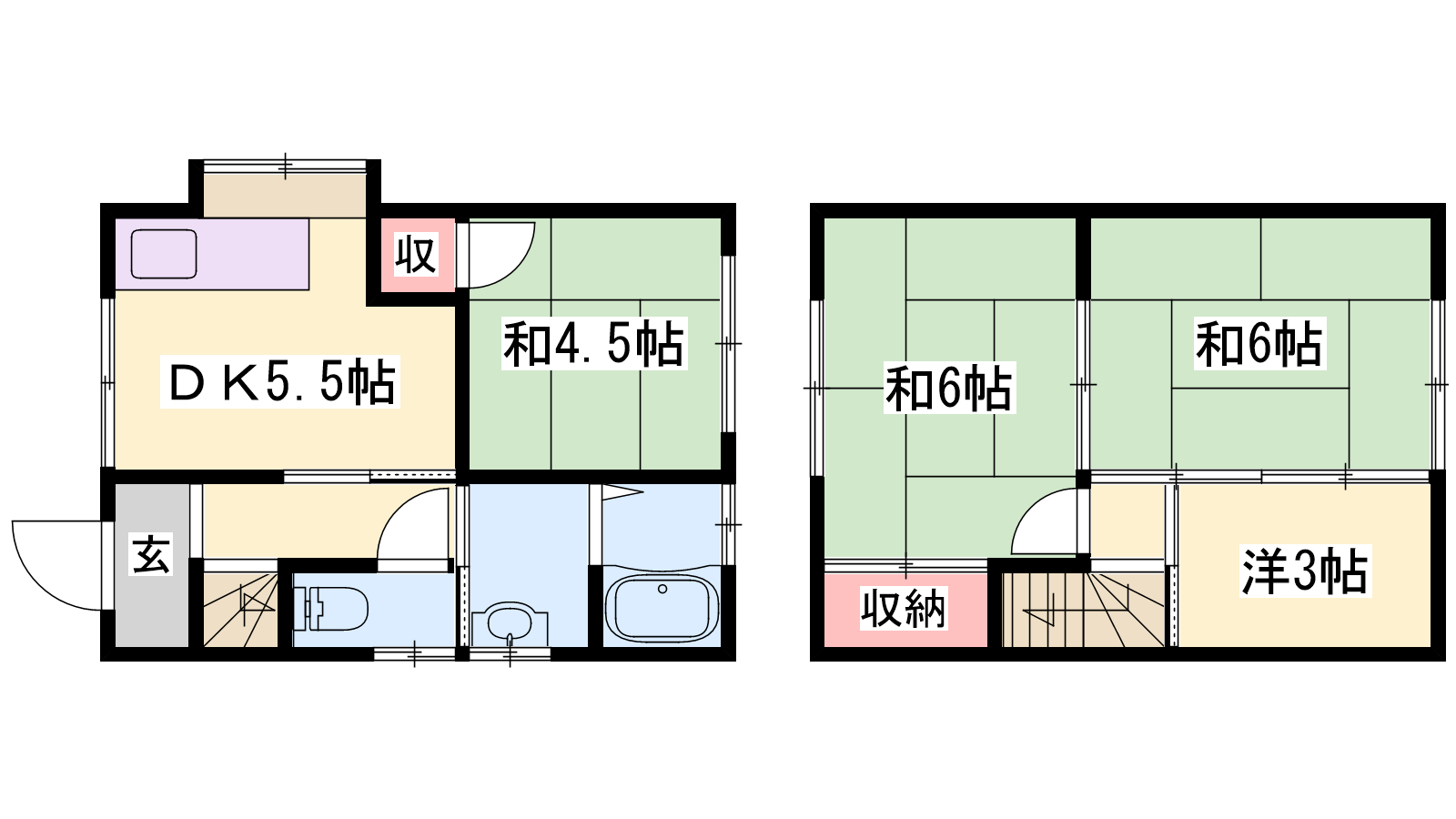 - DK5.5帖、洋室3帖、和室6帖、和室6帖、和室4.5帖