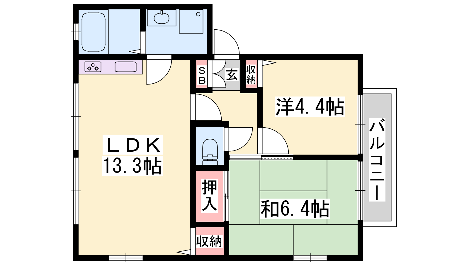 - LDK13.2帖、洋室4.4帖、和室6.4帖