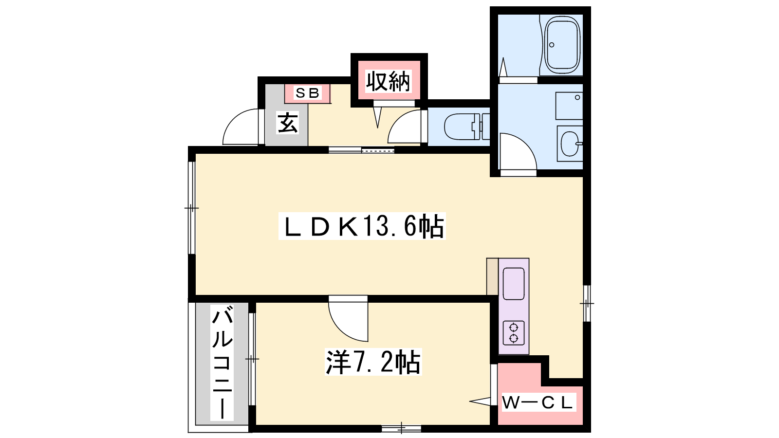 - LDK13.6帖、洋室7.2帖