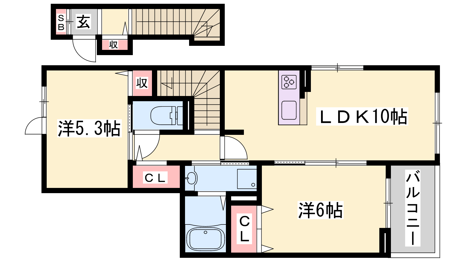 - LDK10帖、洋室6帖、洋室5.3帖