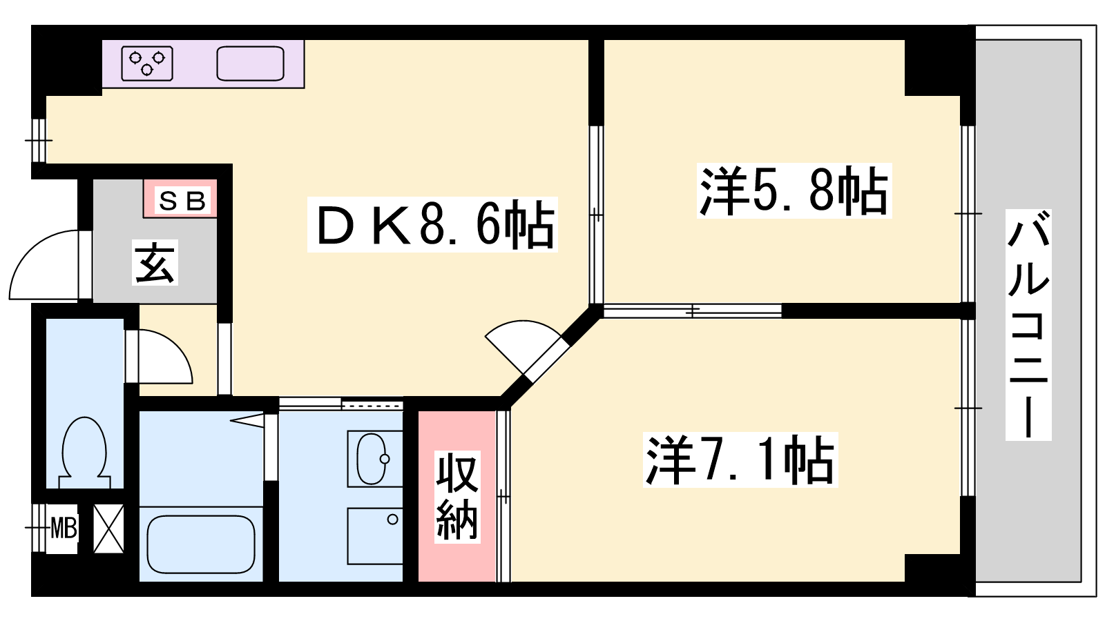 - DK8.6帖、洋室7.1帖、洋室5.8帖