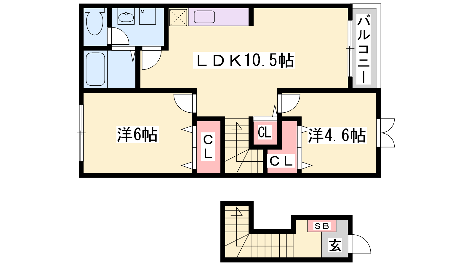 - LDK10.5帖、洋室6帖、洋室4.6帖