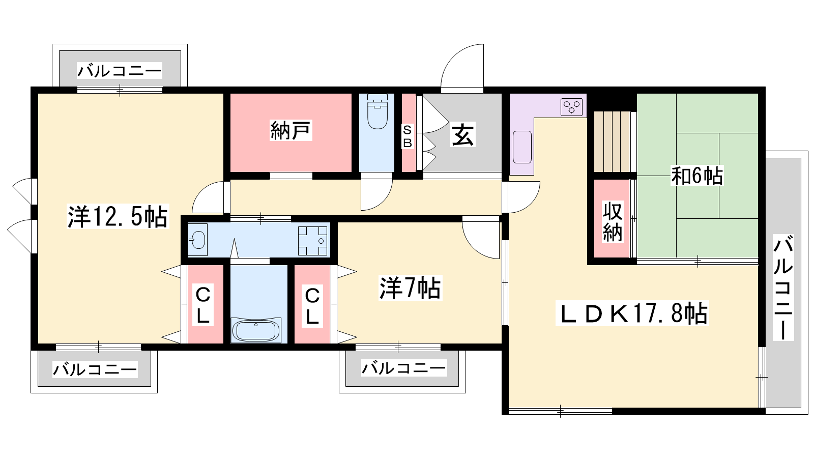 - LDK17.8帖、洋室12.5帖、洋室7帖、和室6帖