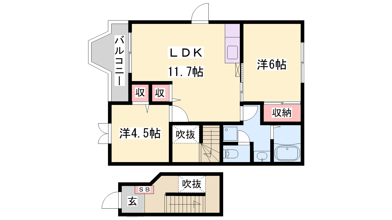 - LDK11.7帖、洋室6帖、洋室4.5帖