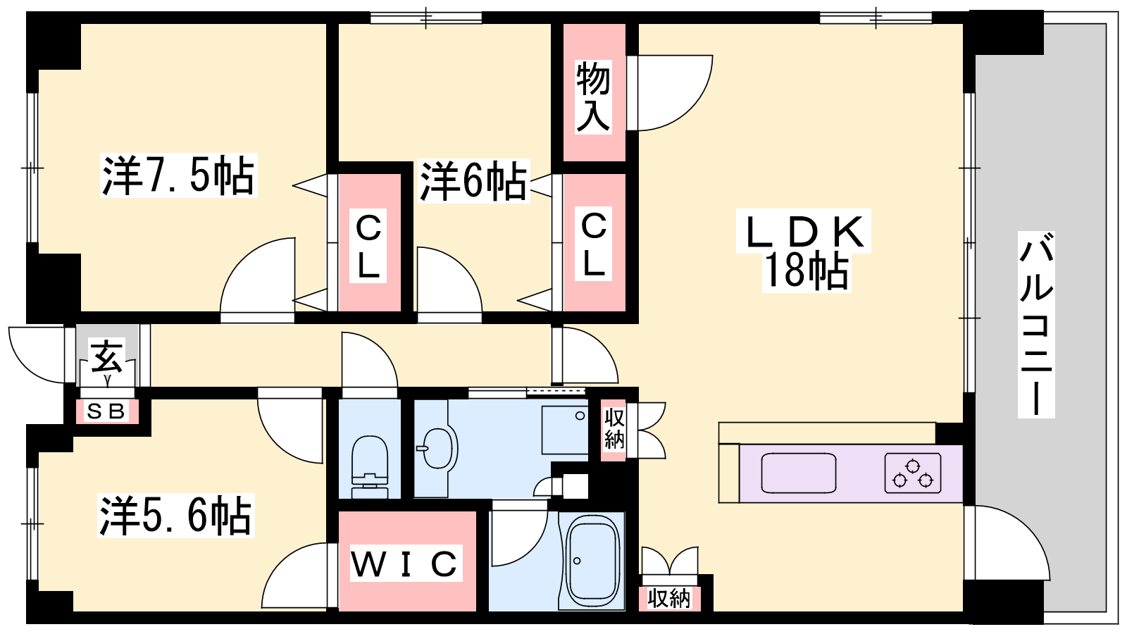 - LDK18帖、洋室7.5帖、洋室6帖、洋室5.6帖