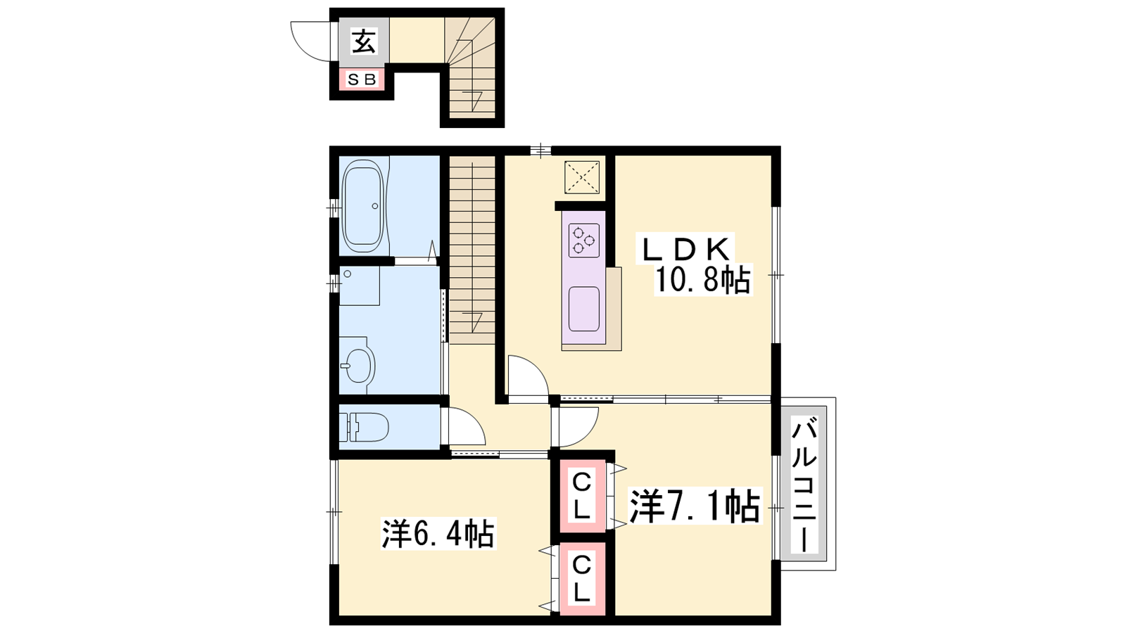 - LDK10.8帖、洋室7.1帖、洋室6.4帖