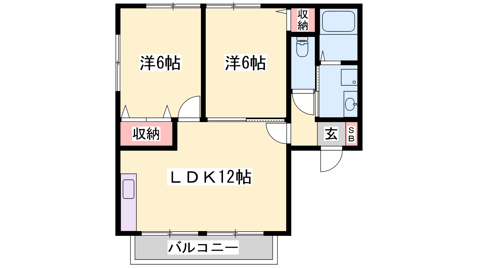 - LDK12帖、洋室6帖、洋室6帖