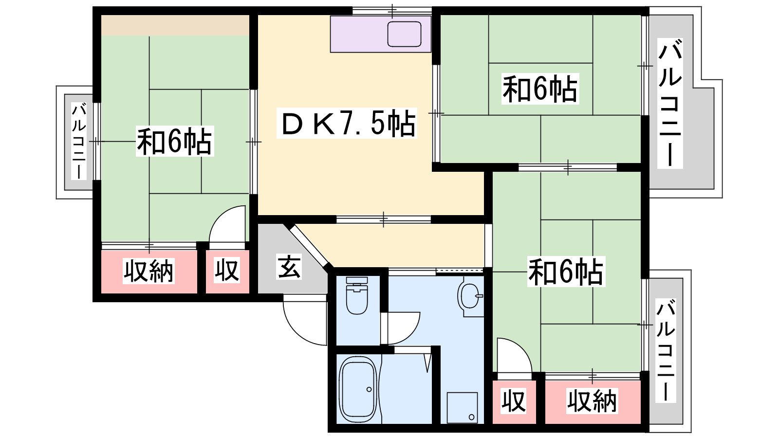 - DK7.5帖、和室6帖、和室6帖、和室6帖