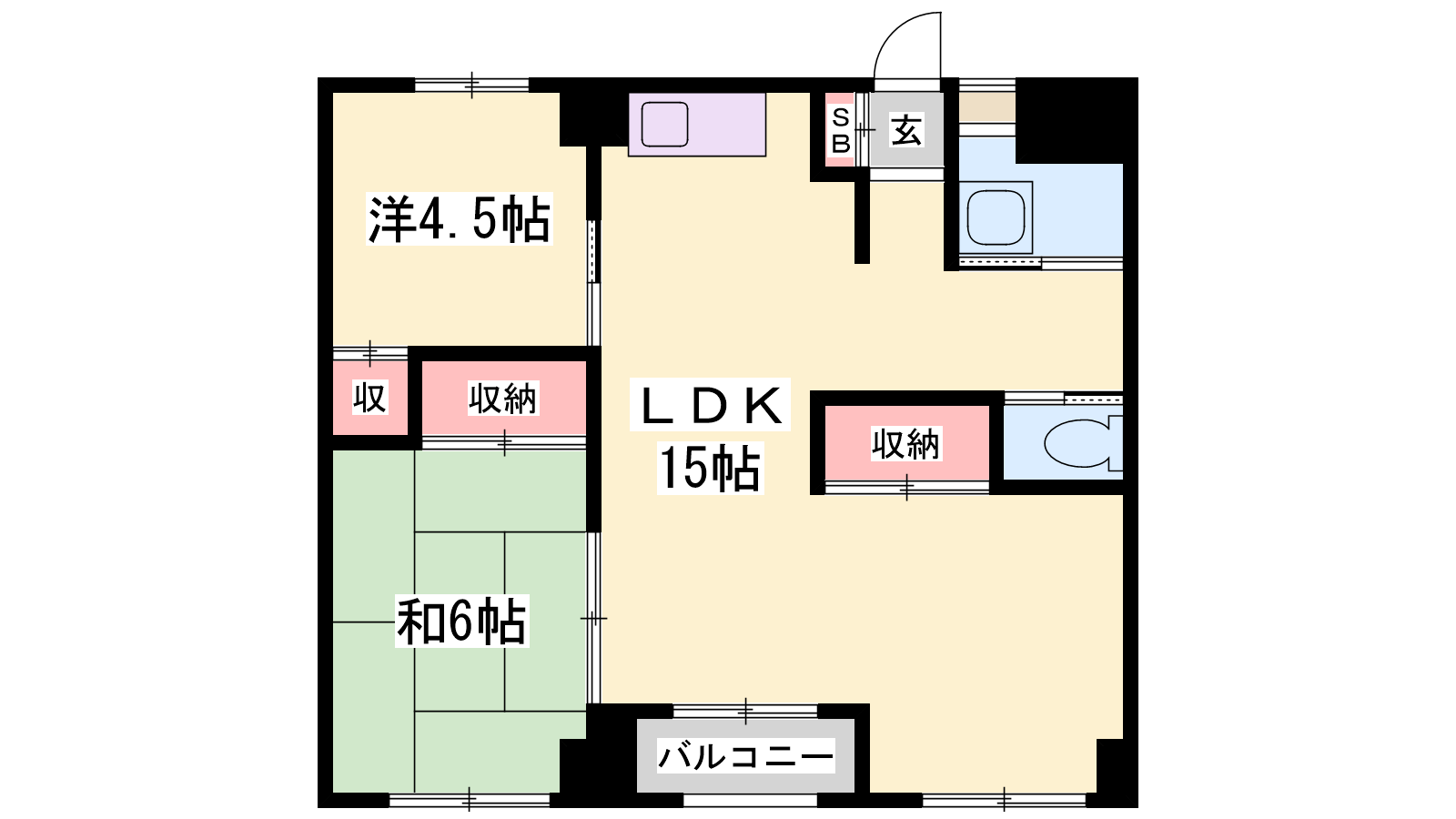 - LDK15帖、和室6帖、洋室4.5帖