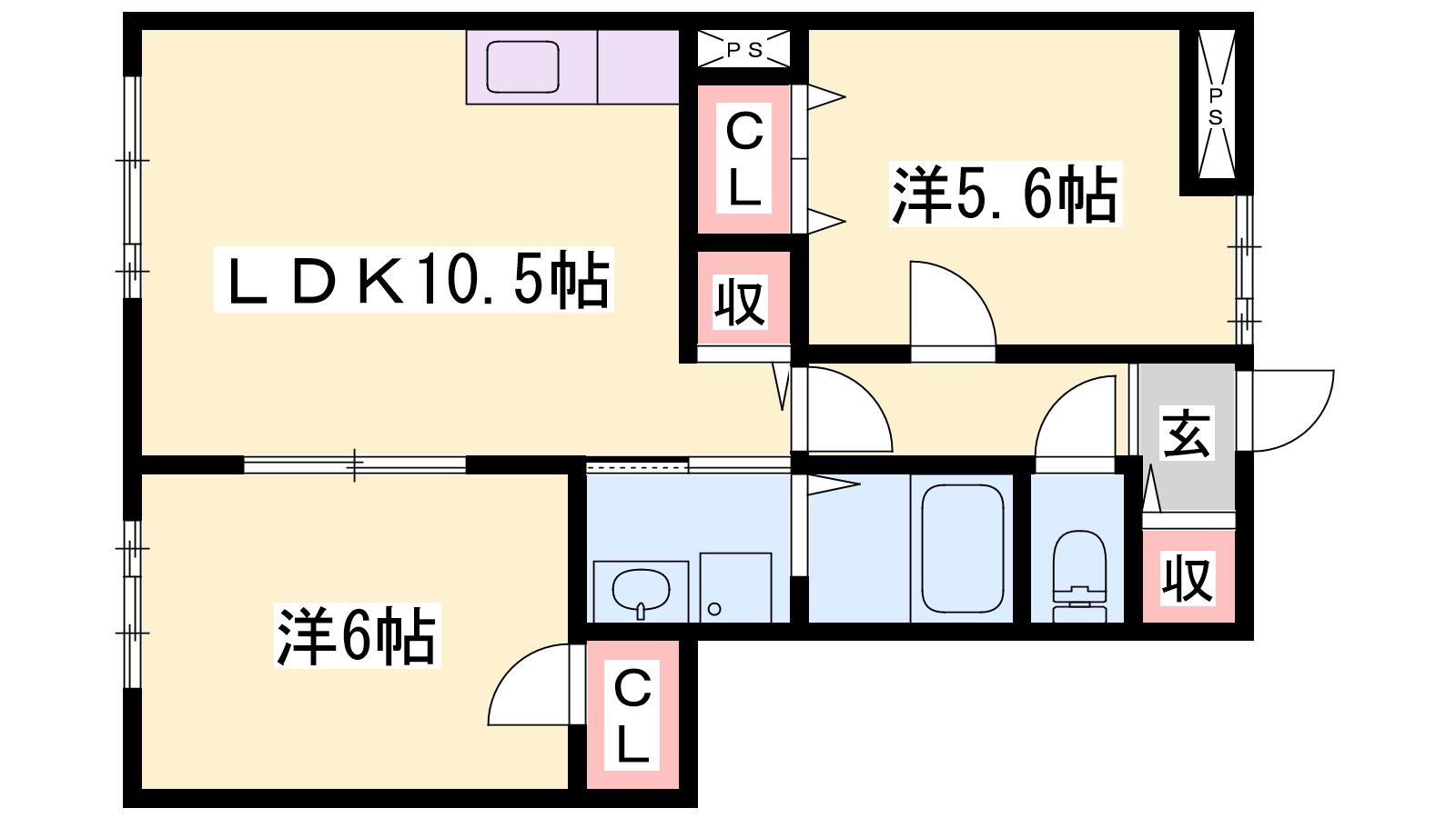 - LDK10.5帖、洋室6帖、洋室5.6帖