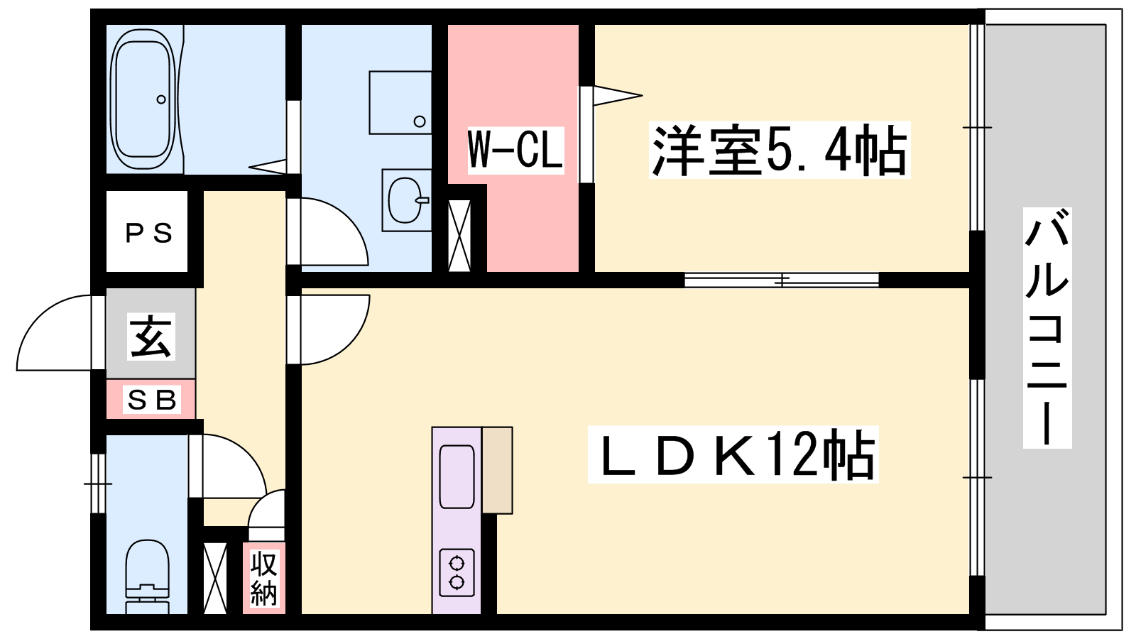 - LDK12帖、洋室5.4帖