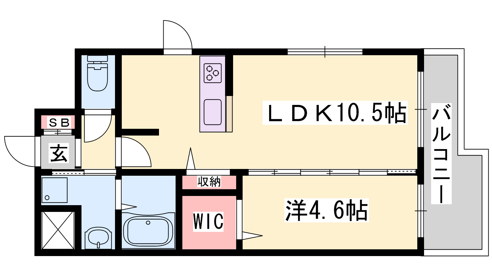 - LDK10.5帖、洋室4.6帖