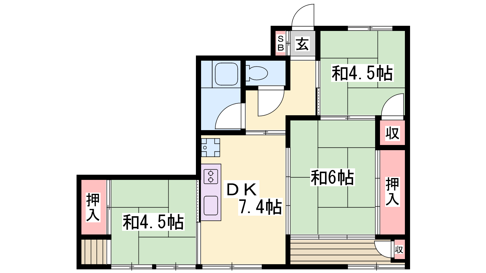 - DK7.4帖、和室6帖、和室4.5帖、和室4.5帖