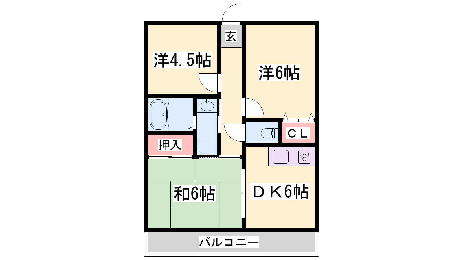 - DK6帖、和室6帖、洋室4.5帖、洋室6帖