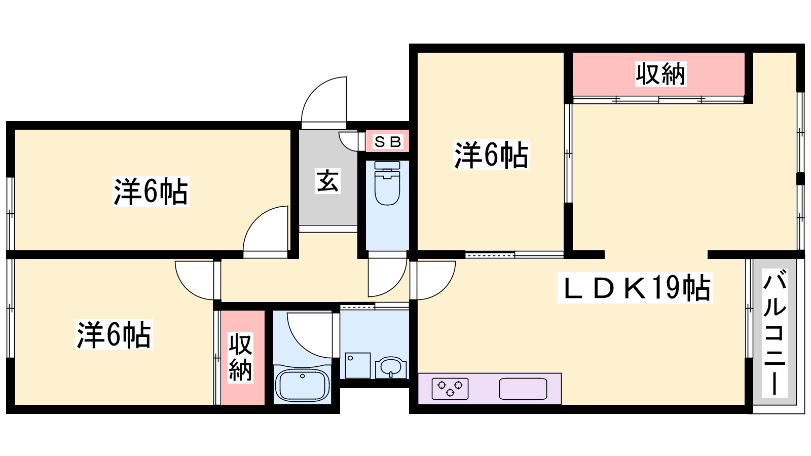 - LDK19帖、洋室6帖、洋室6帖、洋室6帖