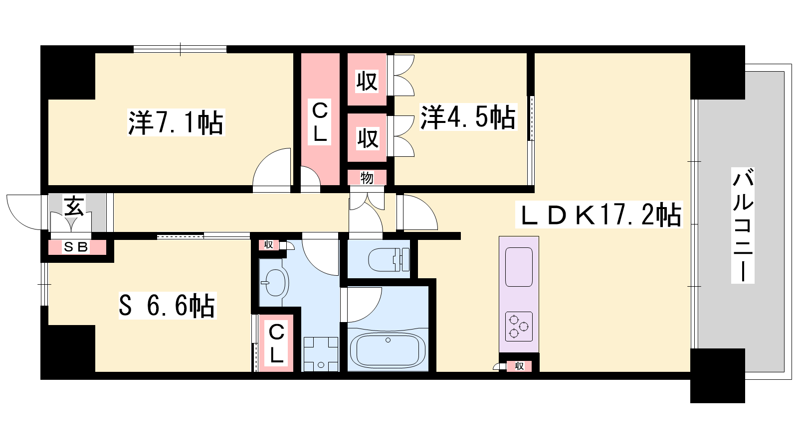 - LDK17.2帖、洋室7.1帖、洋室4.5帖、S6.6帖