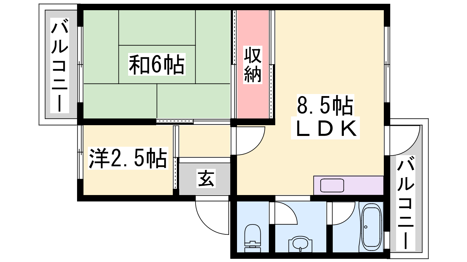 - DK8.5帖、洋室2.5帖、和室6帖