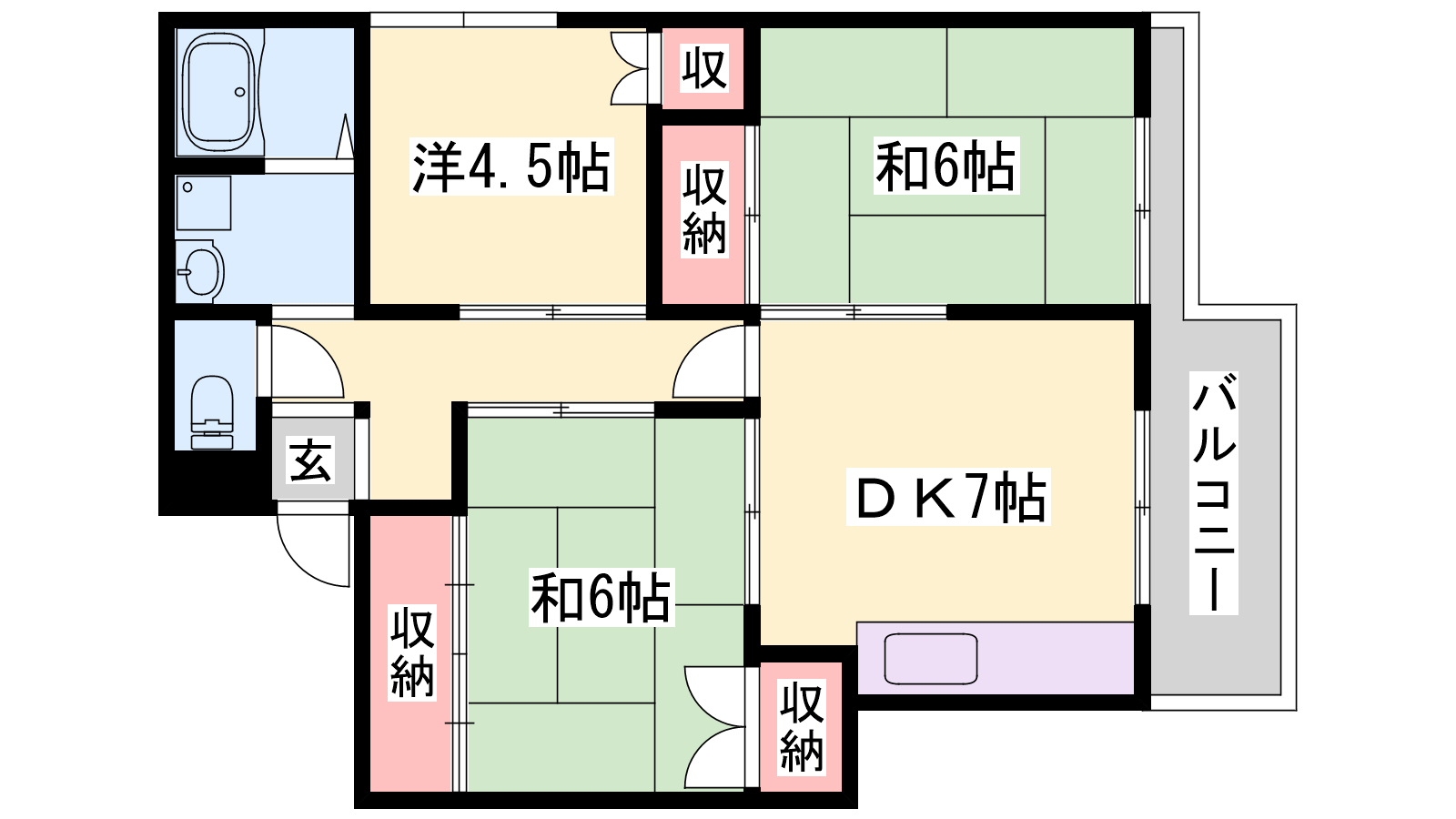 - DK7帖、洋室4.5帖、和室6帖、和室6帖