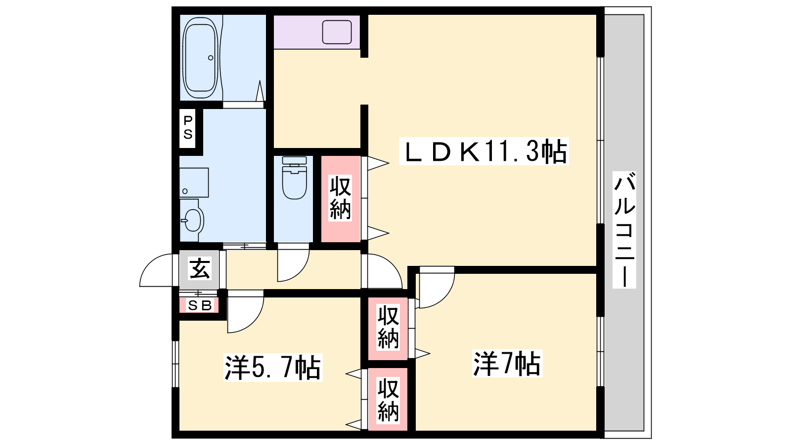 - LDK11.4帖、洋室7帖、洋室5.75帖