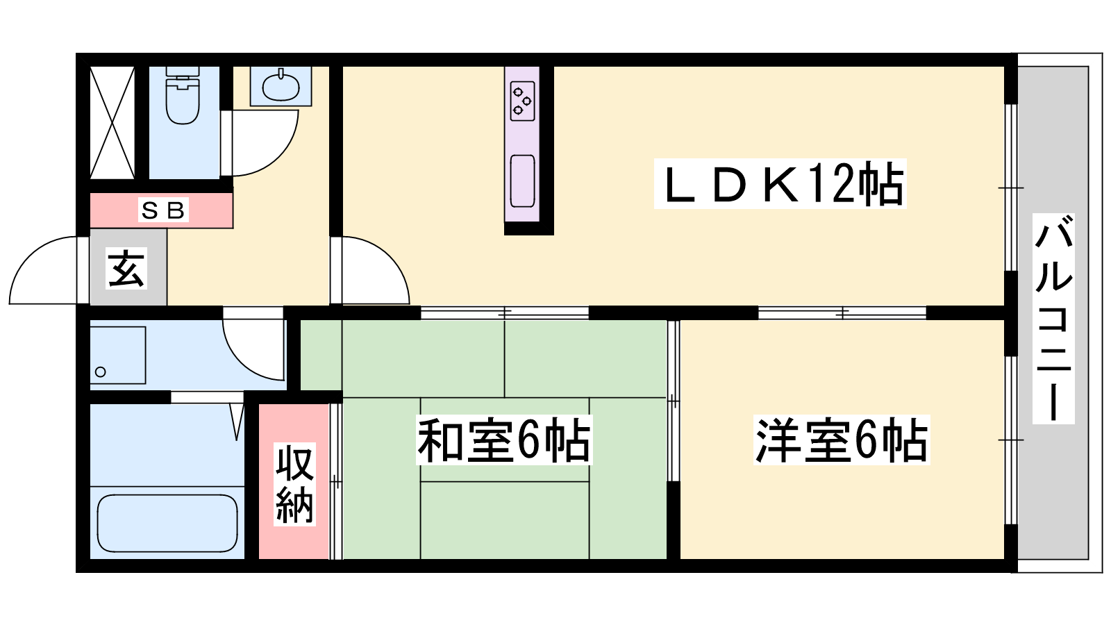 - LDK12帖、洋室6帖、和室6帖