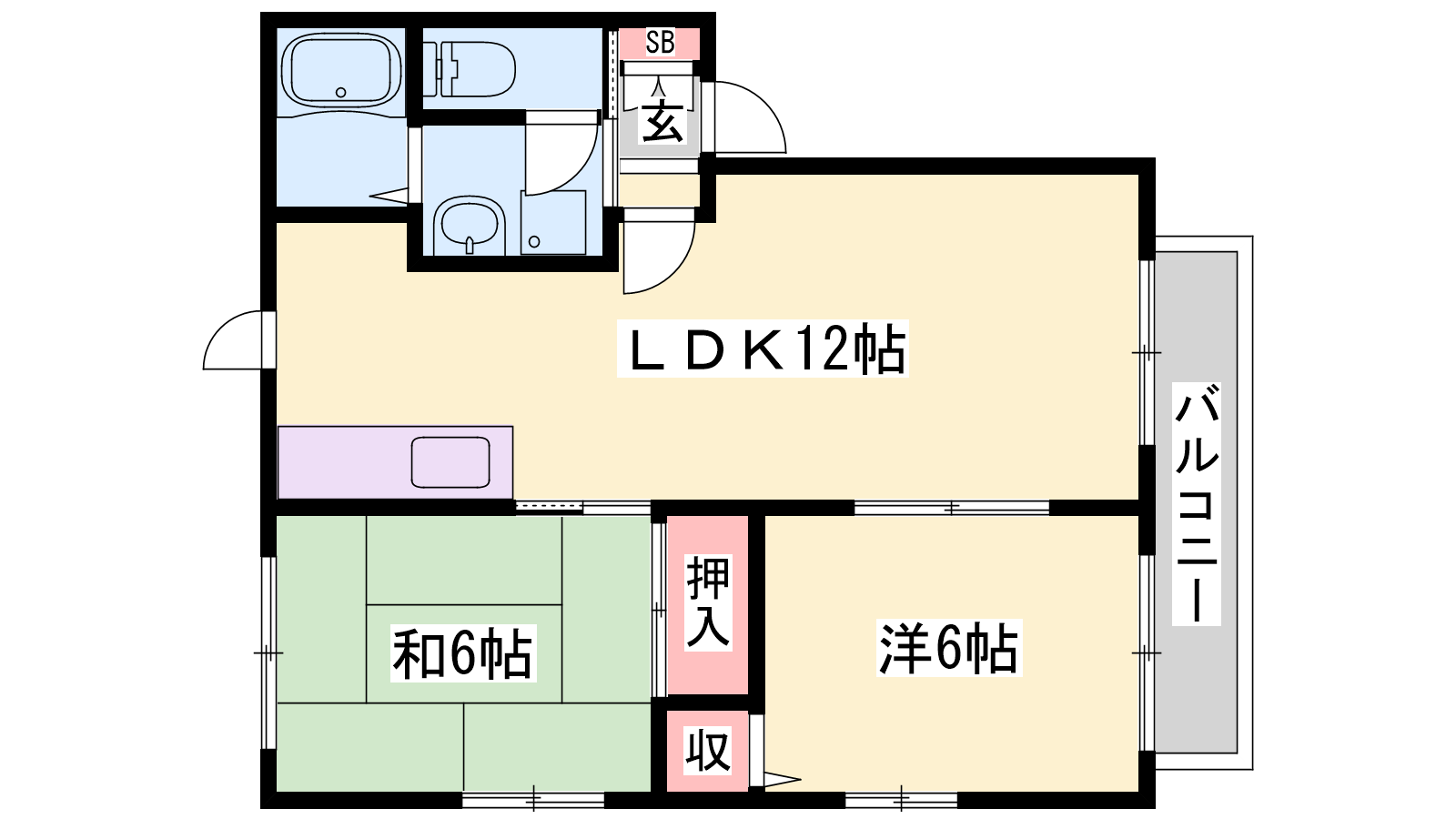 - LDK12帖、和室6帖、洋室6帖