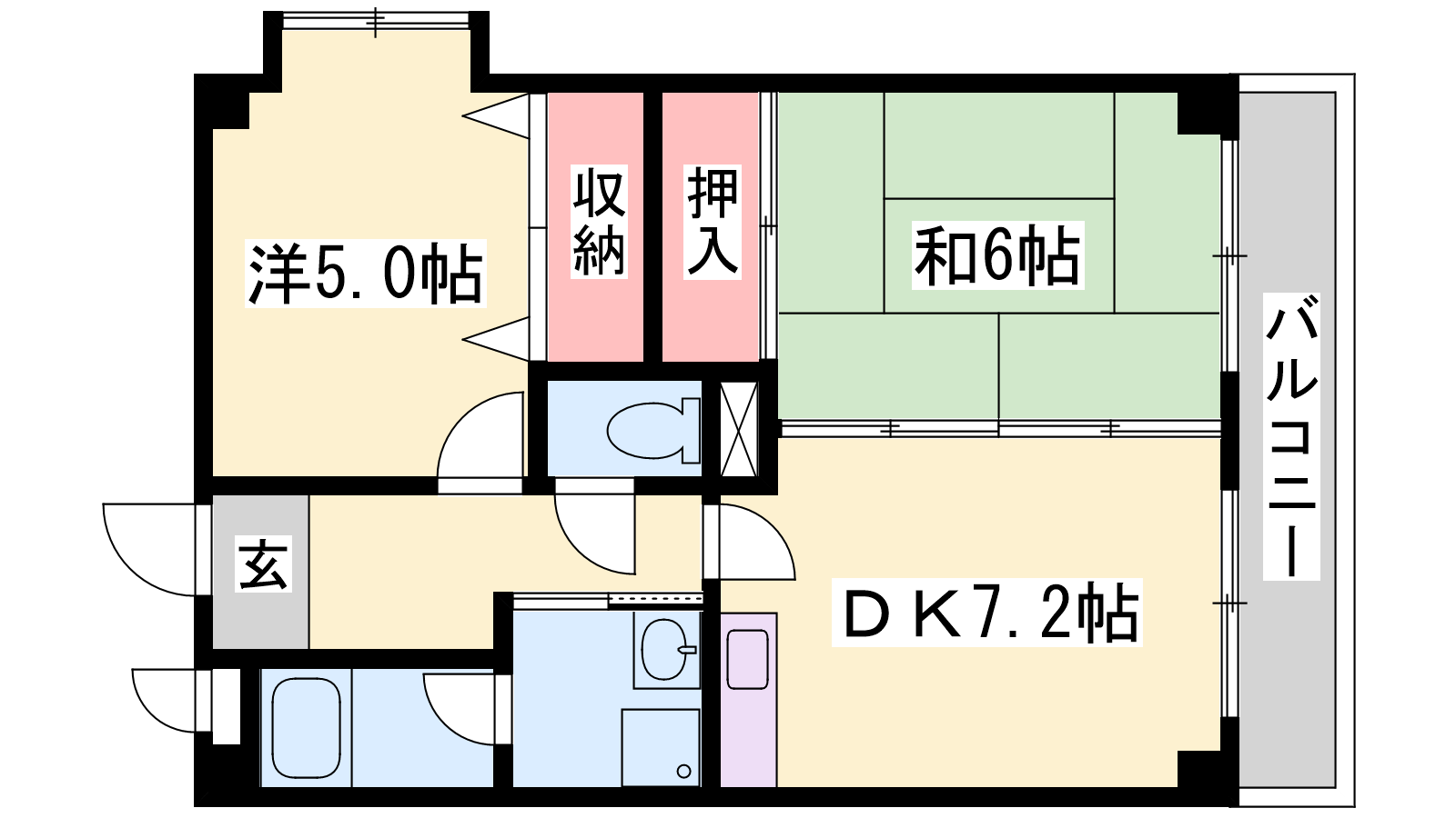 - DK7.2帖、和室6帖、洋室5帖