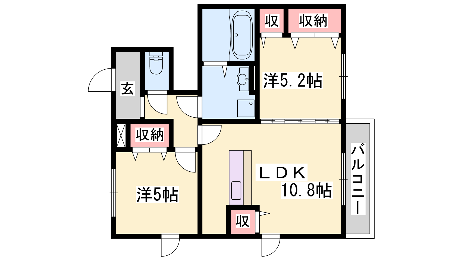 - LDK10.8帖、洋室5帖、洋室5.2帖