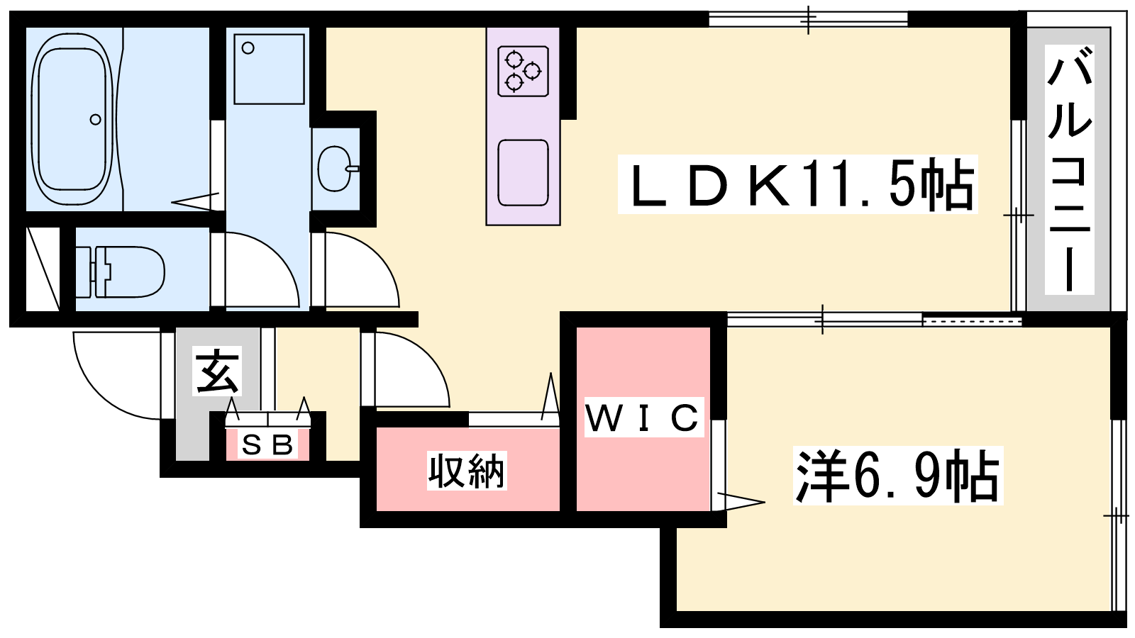 - LDK11.5帖、洋室6.9帖