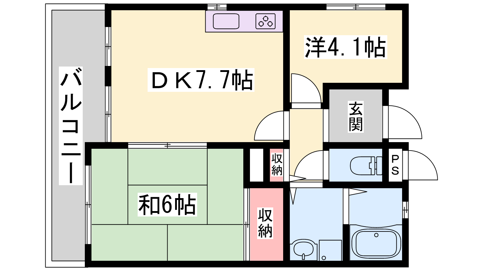- LDK7.7帖、洋室4.1帖、和室6帖