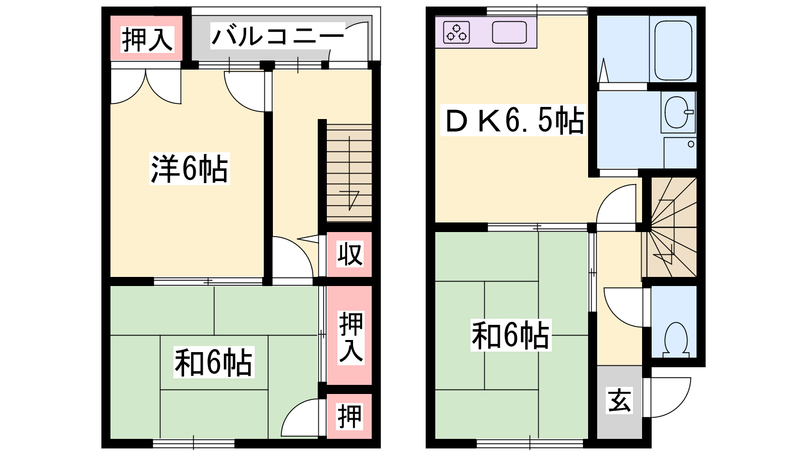 - DK6.5帖、洋室6帖、和室6帖、和室6帖